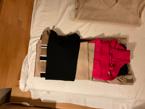 Mini Capsule wardrobe: Black skirt, black pants, beige pants. That’s a lot of variety! Now, with that just the right amount of tops to be fresh, and a few options to create different looks like a waistcoat and a blazer, and of course - plenty of jewelry that is easy to mix and match with it all. Include comfy pants for the weekend and hotel evenings!